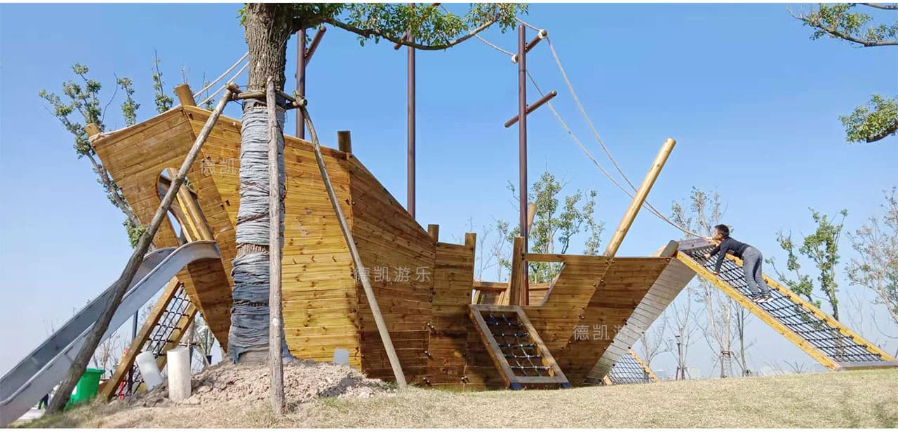 有艘可以攀爬玩耍的“擱淺”海盜船